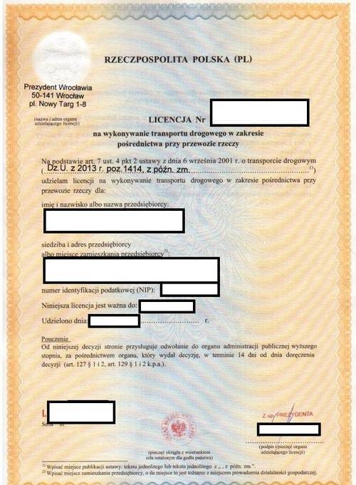 Licencja - spedycja
