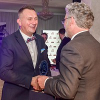 Prezes Zarządu PSPD Tomasz Rejek odebrał szereg życzeń i prezentów od wielu uczestników uroczystej Gali, natomiast sam podziękował i wręczył jubileuszowe statuetki kilkudziesięciu osobom zasłużonym dla stowarzyszenia.